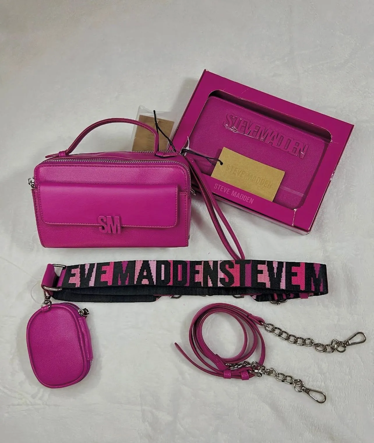 Bolso Steve Made, Kit bolso, billetera, monedero y doble correa.